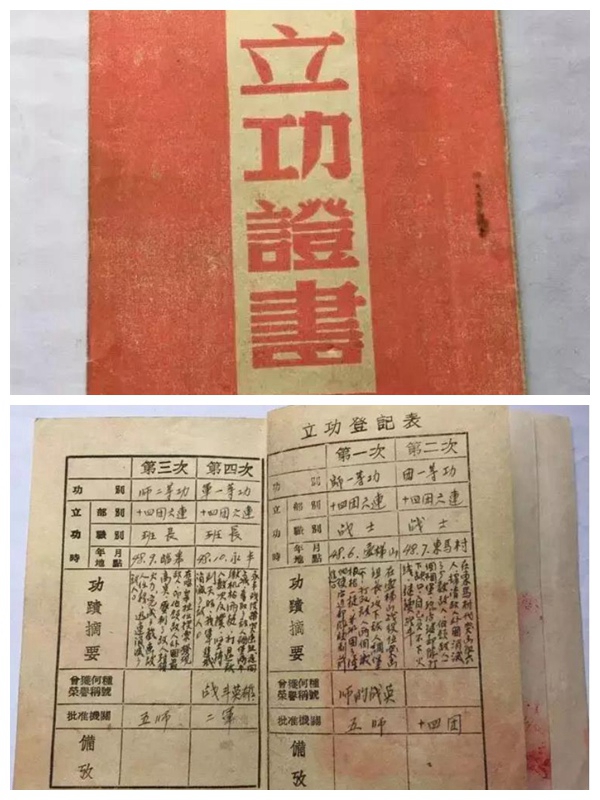在这本立功证书的立功登记表上,详细记录着张富清在解放战争时立下的战功: