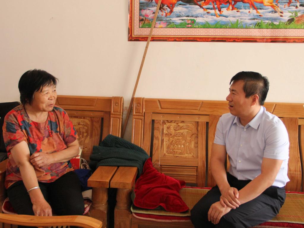 合阳县委常委、纪委书记菊峰与贫困户交谈