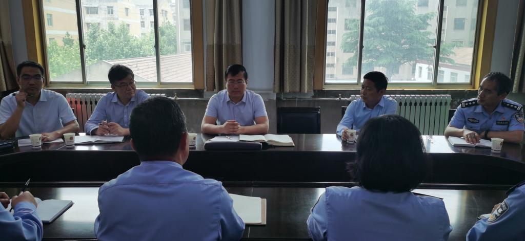 5月28日,合阳县委常委、纪委书记、监委主任、县政法队伍教育整顿领导小组副组长菊峰一行深入公安局检查督导教育整顿工作。副县长、公安局党委书记、局长陈康,党委副书记、政委康平参与。